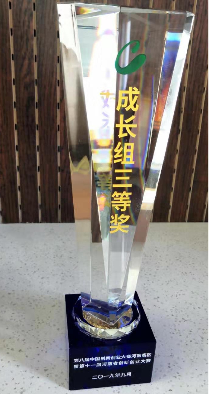 榮獲“第八屆中國創(chuàng)新創(chuàng)業(yè)大賽河南賽區(qū)三等獎(jiǎng)”